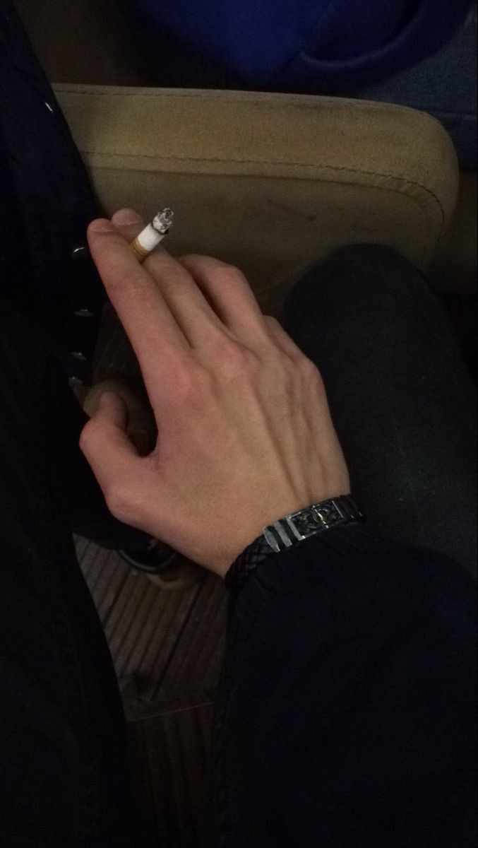 He took in a deep smoke, his lungs filling in with the smoke from the burning cigarette. As he let out a satisfied hum, and suddenly his mind drifted to the girl he met this morning.